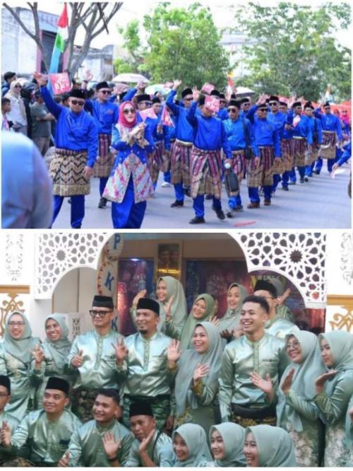 Ribuan Orang Peserta dan Kafilah Kecamatan Pinggir Ikut Memeriahkan Pawai Ta'aruf MTQ Kab.Bengkalis ke-49
