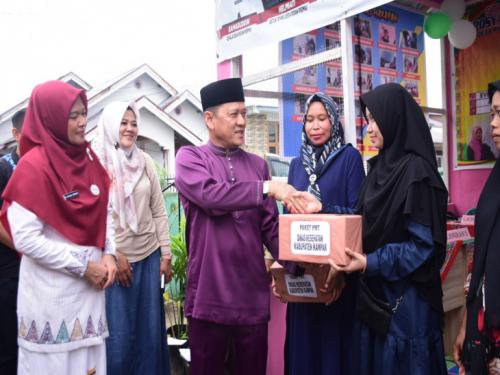 Bersama Pj Bupati Kampar, Ketua Pembina Posyandu Kampar Ricana Djayanti Serahkan Bantuan Makanan Tambahan.