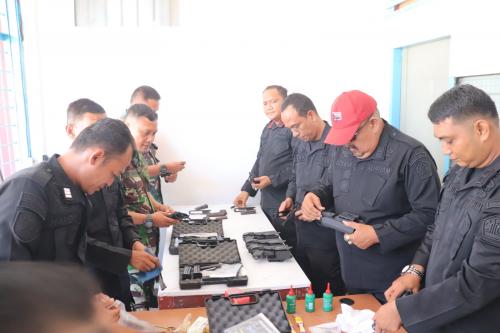 LAKSANAKAN PERAWATAN SENJATA API, LAPAS PASIR PENGARAIAN BERSINERGI DENGAN KORAMIL 02 RAMBAH