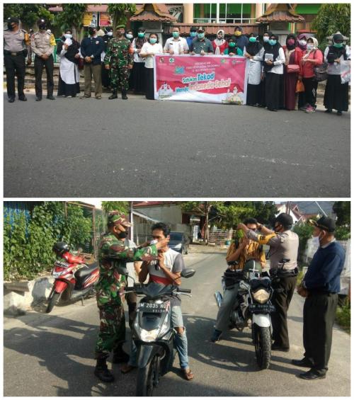 Peringati HKN, Babinsa Bersama Puskesmas Senapelan Bagikan Masker Kepada Warga.