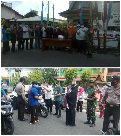 Cegah Covid-19, Babinsa Padang Terubuk Bagikan Masker Kepada Warga.