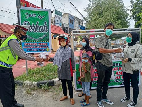 Ops. Zebra Lancang Kuning 2020 Sat Lantas Polres Siak Bagikan Makanan Gratis Kepada Warga