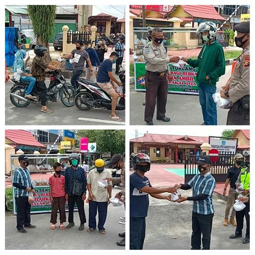 Jumat Barokah, Polsek Tualang Bagikan Makanan dan Minuman Gratis Kepada Masyarakat