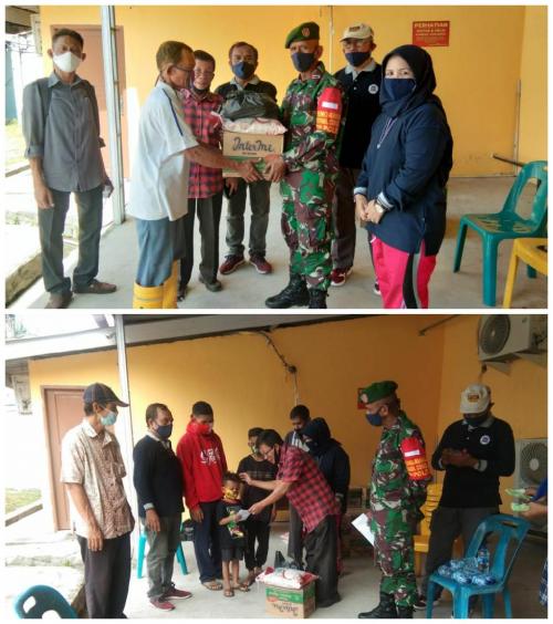 Babinsa Kampung Baru Bersama Lurah Bagikan Paket Sembako Dari Donatur.