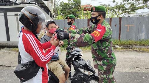 Sebagai Upaya Cegah Covid-19, Babinsa Koramil 03/Senapelan Bagikan Masker Kepada Warga