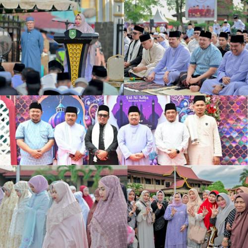 Bersama Keluarga, Bupati Kasmarni Shalat Idul Adha di Halaman Kantor Camat Mandau