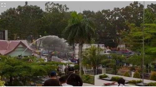 Ricuh, Demo Mahasiswa Tolak UU Cipta Kerja di Depan Gedung DPRD Riau, Polisi Turunkan Water Canon