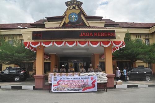 Polres Siak Salurkan Bansos Kepada Masyarakat Siak, Dalam Giat Dirgahayu RI Ke - 75