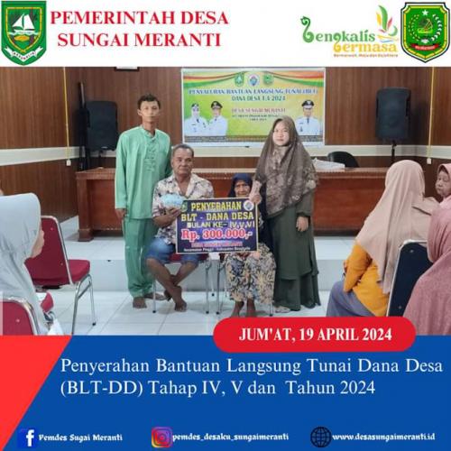 PEMDES SUNGAI MERANTI MENYERAHKAN BLT-DD BULAN KE-IV, V DAN VI TAHUN ANGGARAN 2024 KEPADA KELUARGA PENERIMA MANFAAT