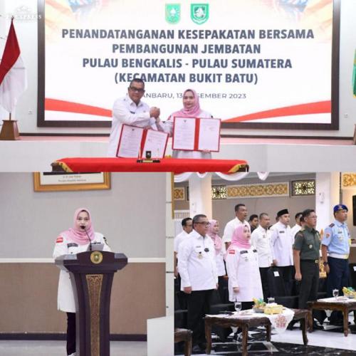 Bupati Kasmarni dan Gubernur Riau Tandatangani Kesepakatan Pembangunan Jembatan Sungai Pakning-Pulau Bengkalis