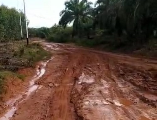 Lantaran ragam kenderaan yang keluar masuk sangat sulit melintasi ruas jalan tanah kuning yang licin dan berlubang.