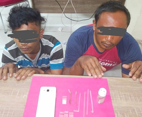 Penangkapan HM dan TS (tersangka) dilakukan Tim Opsnal Sat Narkoba Polres Siak di Jalan Baru Bakal Kampung Pinang Sebatang Kecamatan Tualang Kabupaten Siak, Senin (31/8/2020) sekitar pukul 21.00 Wib.