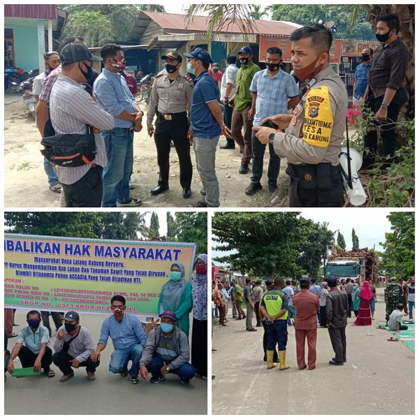Aksi tersebut dilakukan dengan memasang beberapa spanduk dan memblokir jalan satu jalur hingga menyebabkan akses jalan mengalami kemacetan hingga 3 jam" masyarakat meminta agar perusahaan PT. Rapp harus mengembalikan hak masyarakat yg lahanya dan tanaman sawitnya yang dirusak dan diambil lalu ditanami pohon Accasia yang telah dijadikan HTI (Hak Tanaman Industri), aksi tersebut dimulai pukul 08.30 Wib s/d pukul 11.30 siang Wib.