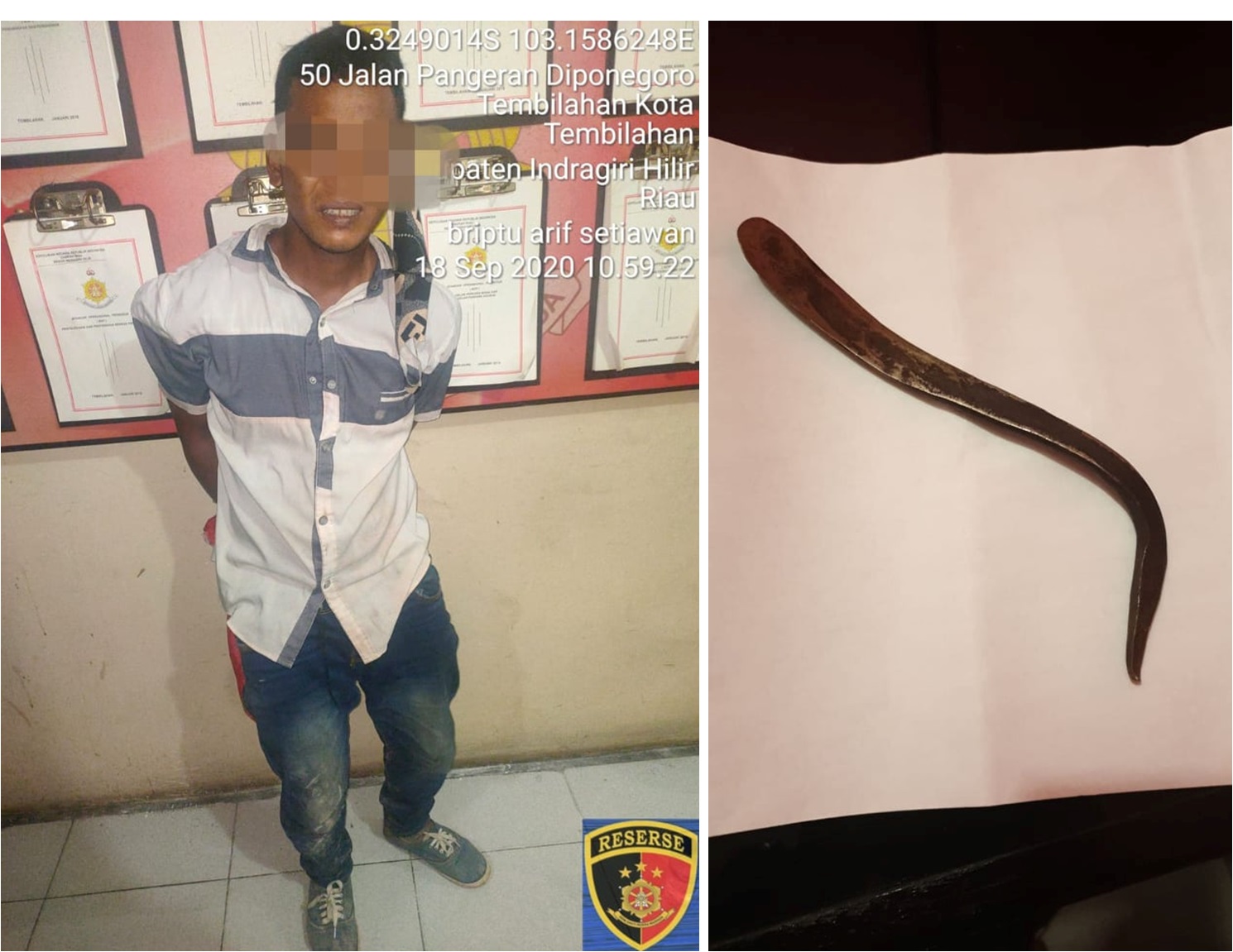Setelah dilakukan penyelidikan, diketahui HA sedang berjalan di sekitar Jalan Jendral Sudirman Tembilahan, dari pinggang pelaku didapati diduga sebilah pisau.