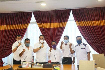 Audiensi ini diakhiri foto bersama antara kelima Pengurus SPRI Sumut dengan Ketua DPRD Sumut Baskami Ginting.