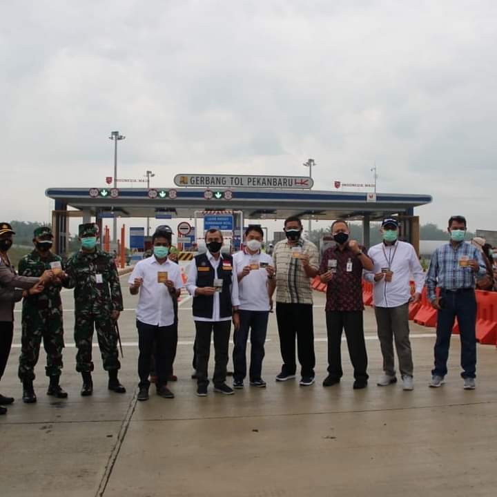Dalam kegiatan Open Traffic percobaan pertama jalan Tol Trans Sumatera Pekanbaru - Dumai, Sabtu pagi (26/09/2020).