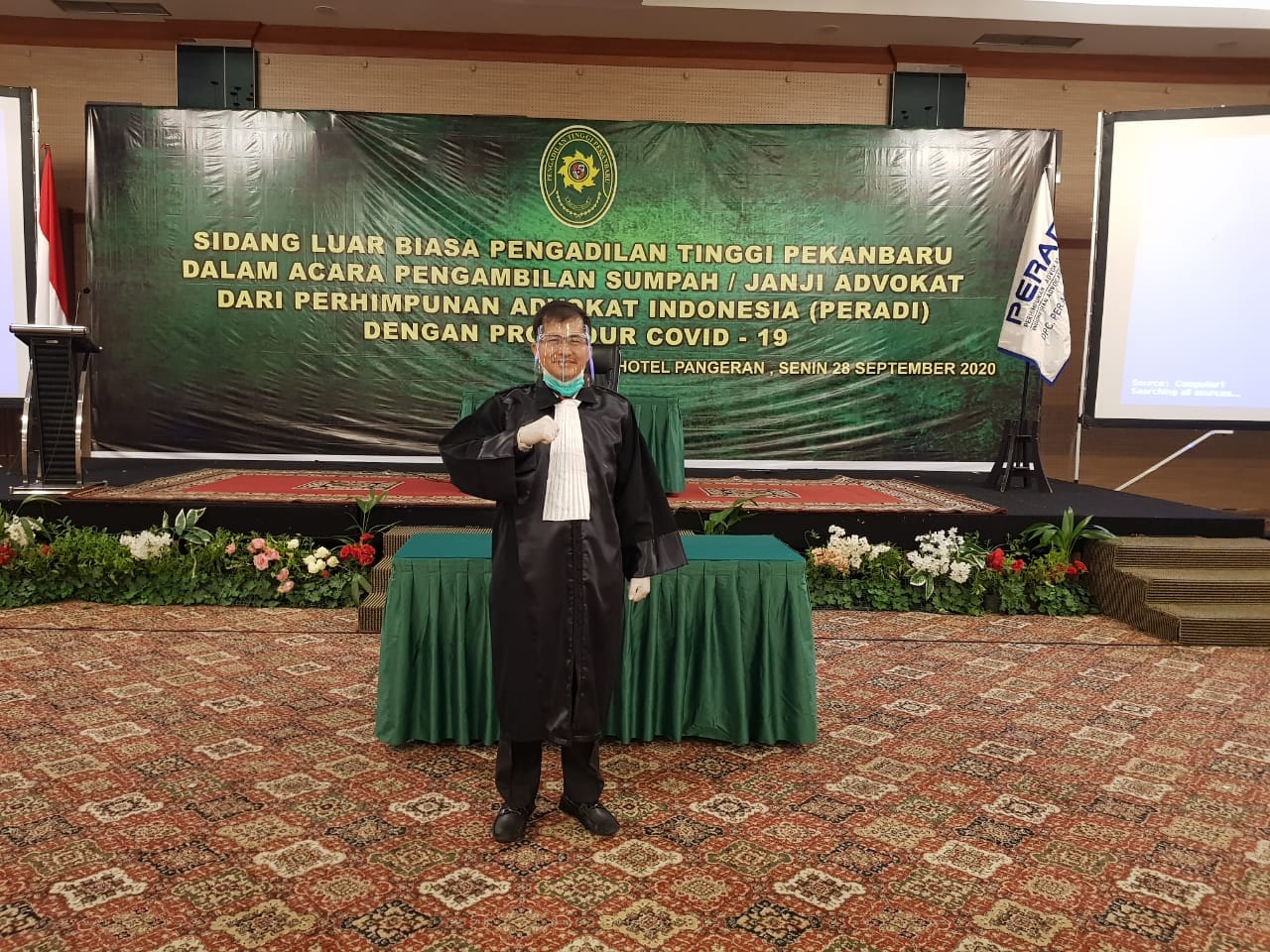 BERITATIME.COM, Pekanbaru - Sebanyak 169 advokat di Pekanbaru resmi diambil sumpah oleh Pengadilan Tinggi Pekanbaru dan dilantik oleh Dewan Pimpinan Nasional (DPN) Peradi, Senin (28/09/20). Bertempat di Hotel Pangeran.