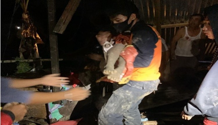 Proses evakuasi warga yang terjebak longsor di Kota Tarakan, Kalimantan Utara, Senin (28/9/20) dini hari. (Foto : Dok. BNPB)