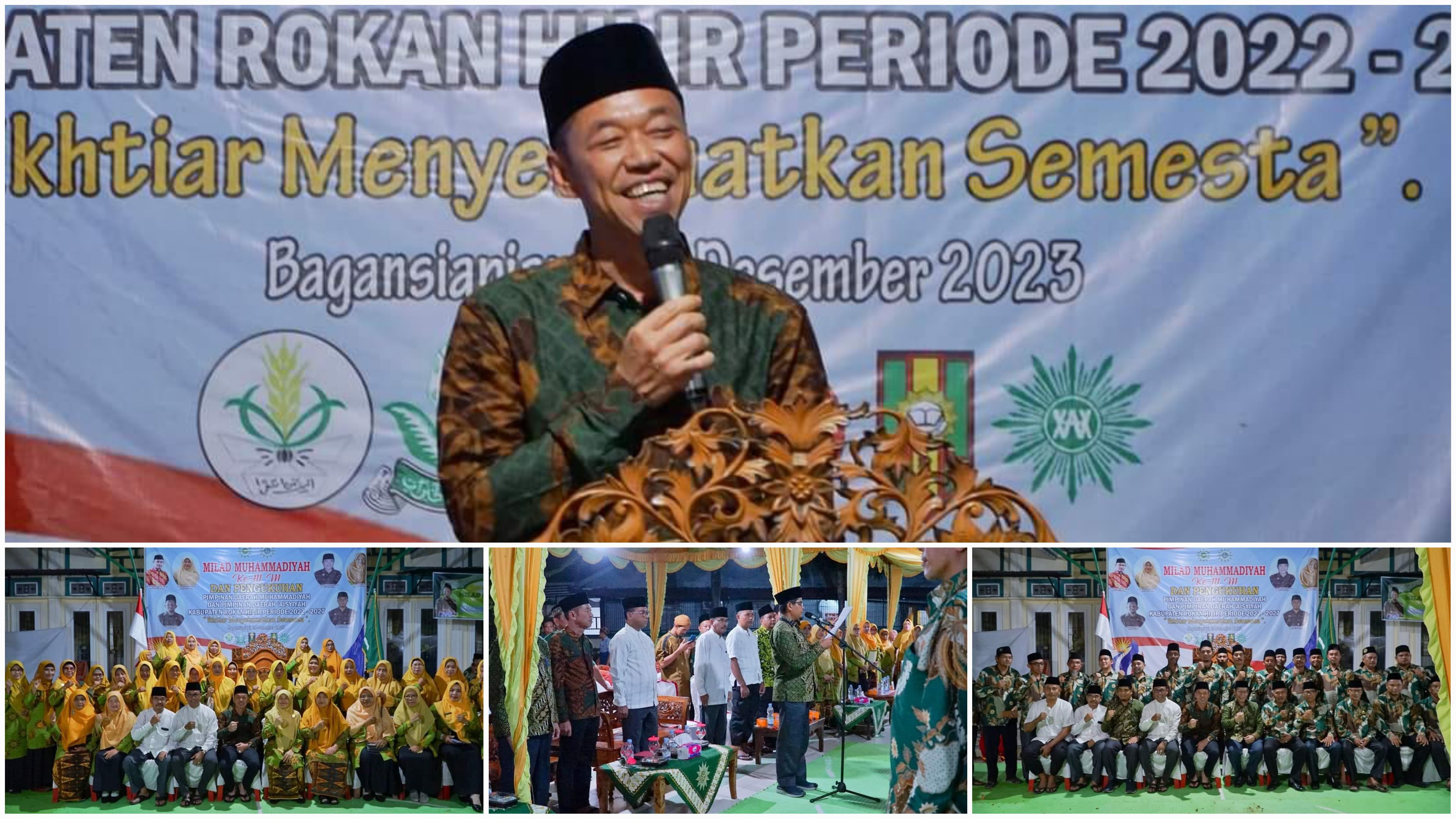 ROHIL (beritatime.com) - Bupati Rokan Hilir (Rohil) Afrizal Sintong,S.IP,M.Si hadiri Milad Muhammaddiyah ke-111 dan Pengukuhan Pimpinan Daerah Muhammadiyah (PDM) serta Pimpinan Daerah Aisyiyah (PDA) Kabupaten Rohil Periode 2022-2027, Rabu (20/12/2023) malam.