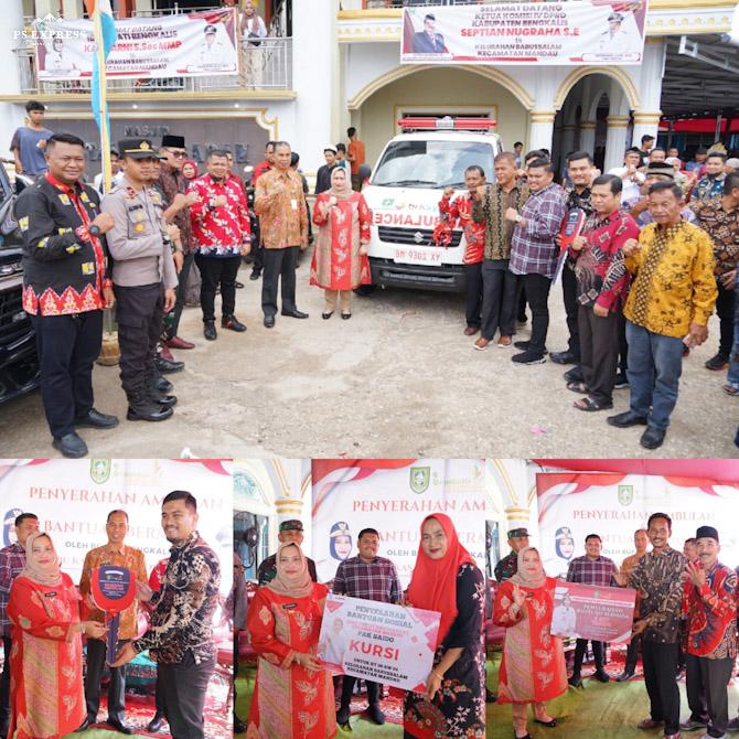 Adapun bantuan yang diserahkan yakni, 6 unit tenda dan 40 unit kursi plastik dari dana Bantuan Keuangan Khusus (BKK) BERMASA, serta 1 unit ambulance CSR PT. Bank Riau Kepri.