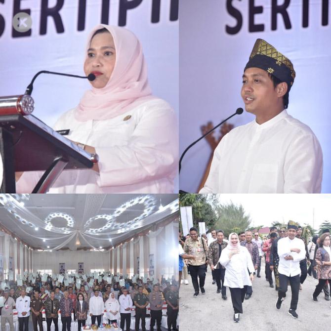 Teks foto: Tersenyum Lebar Masyarakat Bengkalis Terima Sertipikat Tanah Gratis, Kasmarni Ucap Terima Kasih Kepada Wamen ATR/BPN RI.