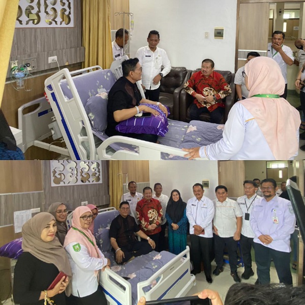 BENGKALIS,beritatime.com Bupati Bengkalis ke-14 Amril Mukminin membesuk Kepala Dinas Komunikasi, Informatika dan Statistik Kabupaten Bengkalis H. Suwarto yang sedang menjalani perawatan di RSUD Bengkalis, Rabu 7 Februari 2024.