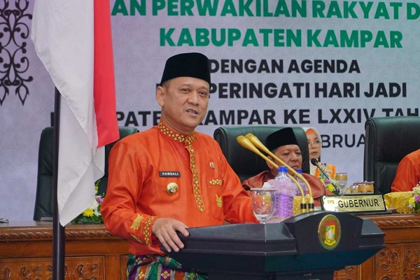 “Atas nama Gubernur Riau dan Pemerintah Provinsi Riau, Saya mengucapkan Tahniah Kabupaten Kampar yang Ke-74, semoga pertumbuhan ekonomi semakin meningkat dan Kampar Makin Melaju Menuju Indonesia Emas Tahun 2045.”ucap Zulkifli