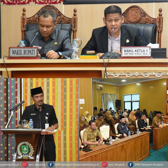 Rapat paripurna di pimpin oleh Wakil Ketua DPRD Sofyan, didampingi Bupati Bengkalis diwakili oleh Wakil Bupati H. Bagus Santoso, bertempat di Ruang Rapat Paripurna DPRD Kabupaten Bengkalis, Senin (26/02/2024).