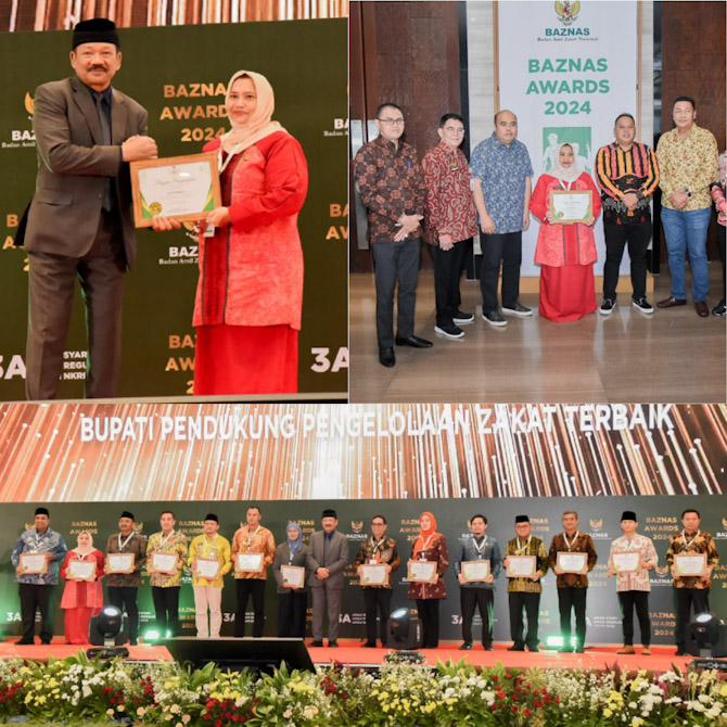 Bupati Bengkalis Kasmarni menerima penghargaan Baznas award, Kamis, 29 Februari 2024 di Jakarta.
