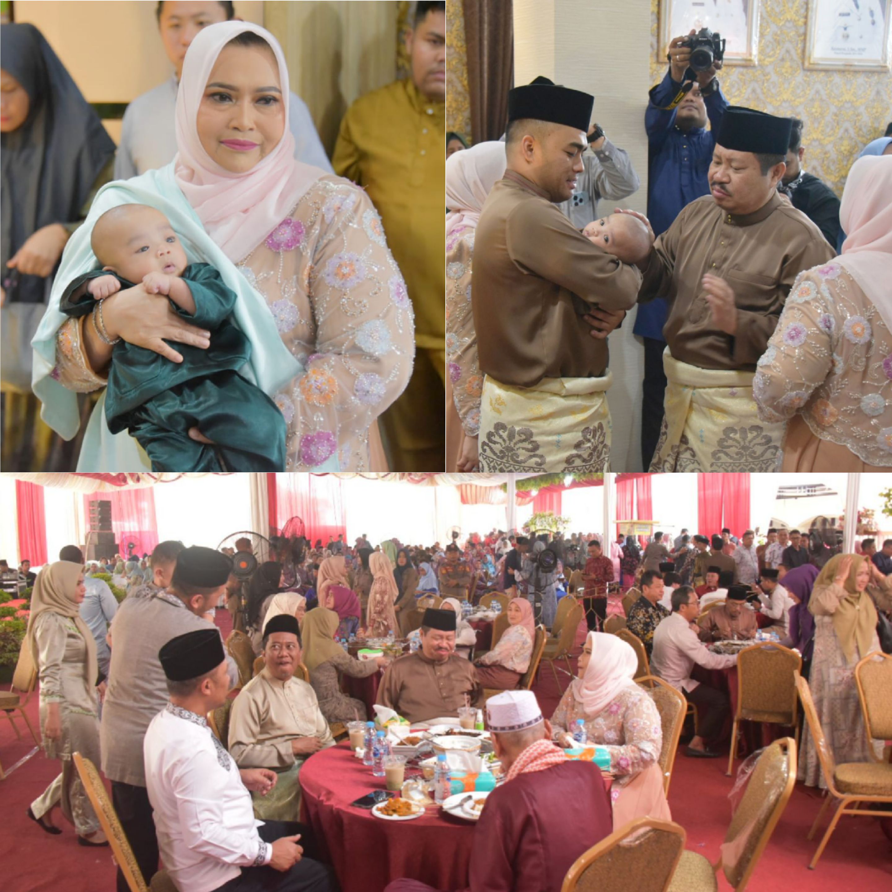 Bupati Bengkalis Kasmarni dan keluarga besar menggelar aqiqah cucu kedua, bertempat di kediamannya Desa Muara Basung Kecamatan Pinggir, Sabtu 2 Maret 2024 pagi.