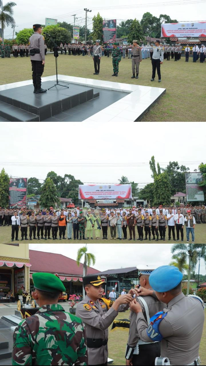 KAMPAR,-Beritatime.com -Sabtu pagi (2/03/2024) mulai pukul 08.00 WIB, bertempat di Lapangan Upacara Mapolres Kampar dilaksanakan Apel Gelar Pasukan Operasi Keselamatan Lancang Kuning 2024, dan Pencanangan Aksi Keselamata Jalan menjelang hari Raya Idul Fitri 1445 H tahun 2024.
