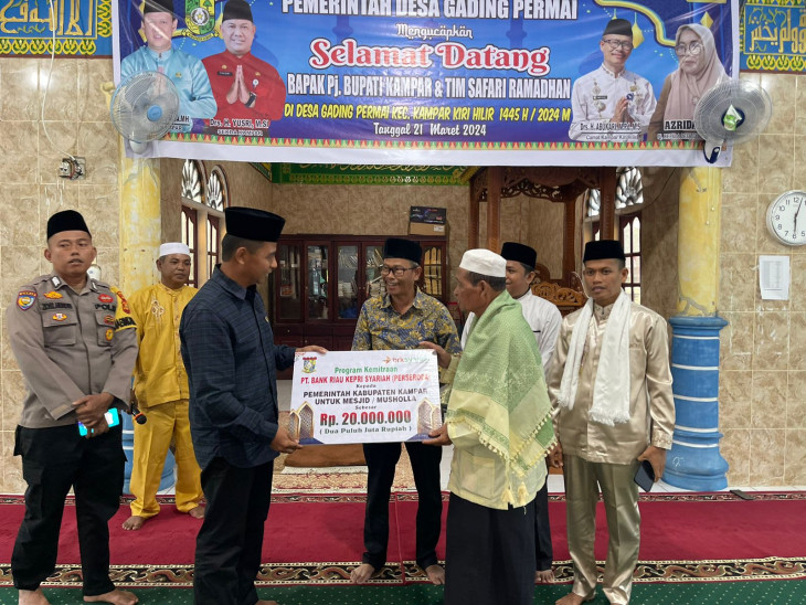 Sebelum melakukan sholat taraweh, Asisten I Ahmaf Yuzar menyerahan secara simbolis bantuan CSR dari Bank Riau Kepri Syariah melalui Pemerintah Kabupaten Kampar untuk Masjid Nurul Iman Desa Gading Permai sebesar Rp 20 juta, penyerahan alquran dari sumbangan ASN dan THL di Ruang Lingkup Pemda Kampar, penyerahan bantuan untuk anak yatim dan fakir miskin dari baznas Kampar.