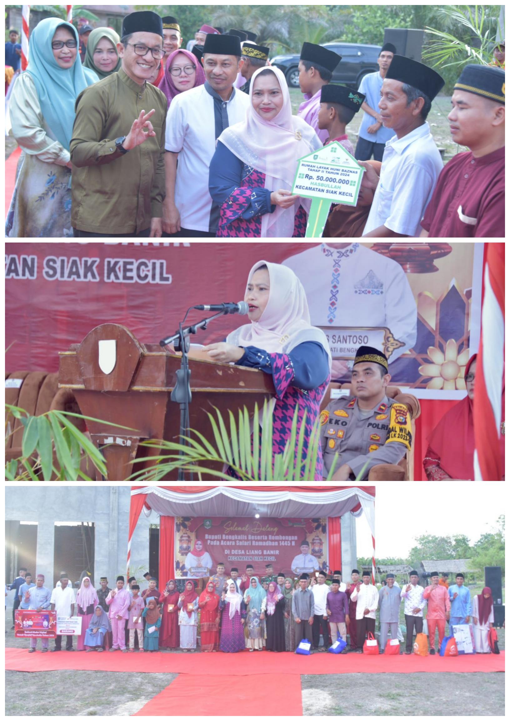 Bupati Kasmarni bersama rombongan kembali melakukan kegiatan safari Ramadhan 1445 Hijriah Pemerintah Kabupaten Bengkalis, Ahad 31 Maret 2024, di Masjid Fastabiqul Khairat Desa Liang Banir Kecamatan Siak Kecil.