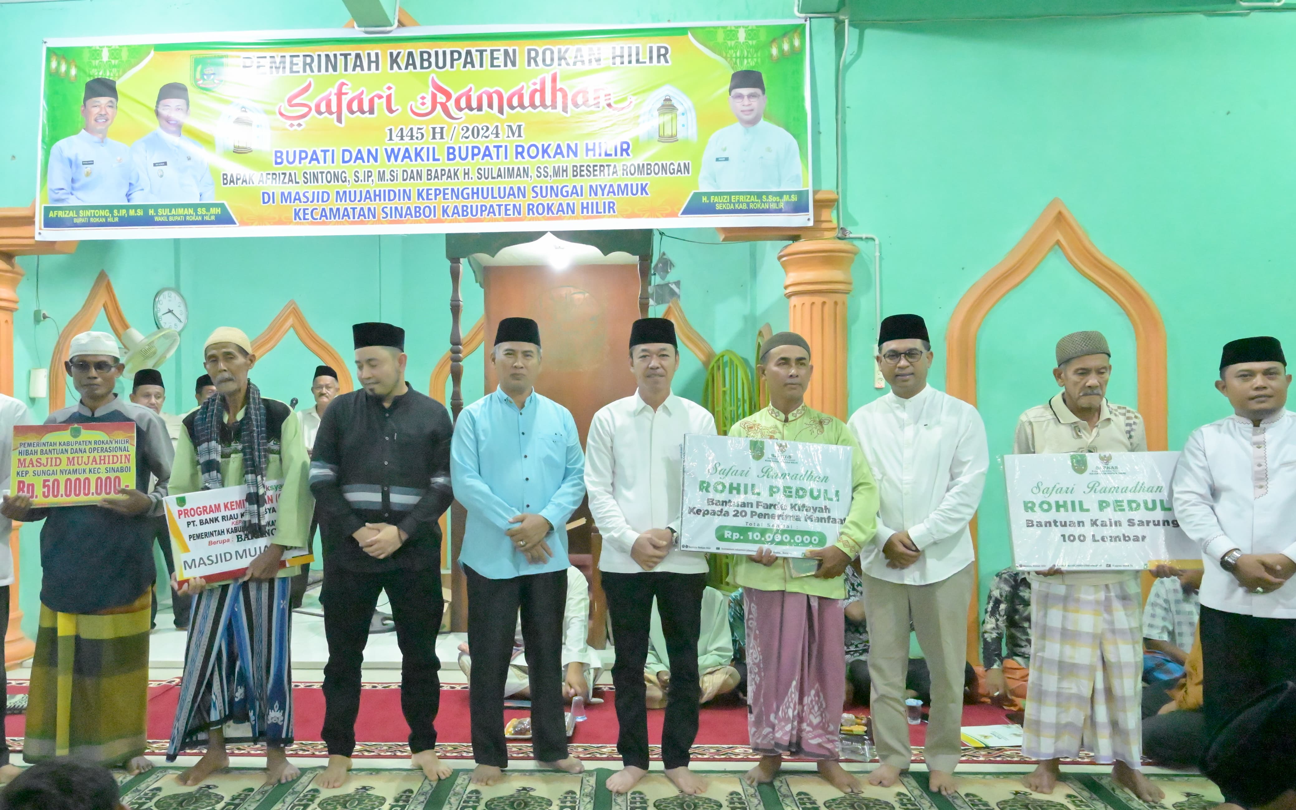 Rohil - Beritatime.com- Hari pertama melaksanakan kegiatan safari Ramadan 1445 Hijriyah, Bupati Rokan Hilir (Rohil) Afrizal Sintong salurkan bantuan operasional musala sekaligus serahkan klaim BPJS Ketenagakerjaan kepada pewaris penerima klaim, Jumat malam (22/3/2024) di Musala Al-Insan, Jalan Pelabuhan Baru, Kelurahan Bagan Barat, Kecamatan Bangko, Rohil, Provinsi Riau.