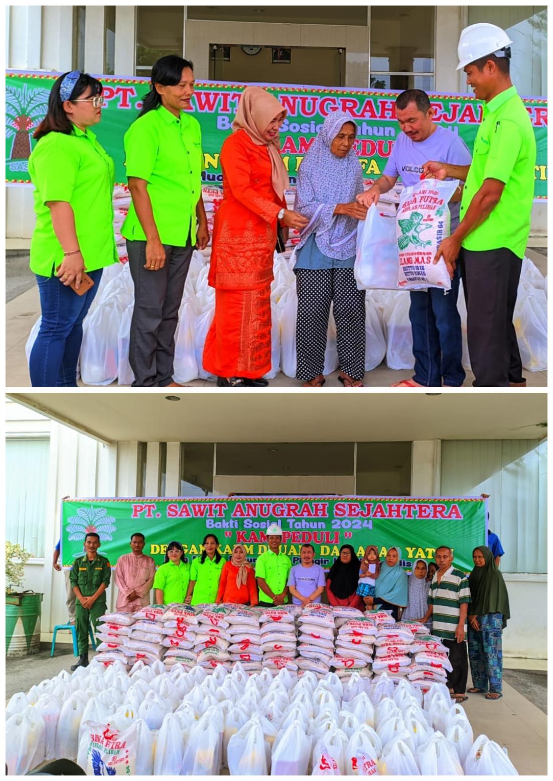 Pabrik Minyak Kelapa Sawit (PMKS) PT. Sawit Anugrah Sejahtera (SAS) yang berada di Desa Muara Basung Kec.Pinggir Kab. Bengkalis bagikan sembako kepada kaum dhuafa dan anak yatim Dalam Rangka Menyambut Hari Raya Idul Fitri 1445 Hijriah, acara tersebut berlangsung di Halaman PT SAS, Jalan Lintas Duri-Pekanbaru ,Rabu (03/04/2024)