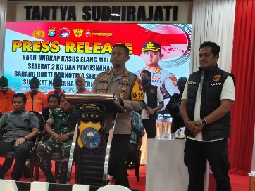 Bengkalis, BeritaTime.Com,- AKBP Satyo Bimo Anggoro, S.H,.S.I.K,.M.H, memimpin langsung press release hasil ungkap Elang Melaka, seberat 2 kilogram, dan Pemusnahan barang bukti narkotika jenis sabu seberat 8,2 Kilogram, merupakan Sindikat Narkoba Internasional, Sebanyak 8,2 Kilogram barang bukti sabu tersebut sudah di Press release waktu kunjungan Bapak Kapolda Riau kemarin, giat press release ini, dilaksanakan Aula Tantya Sudhirajati Mapolres Bengkalis, jalan Pertanian, Desa Senggoro, Kecamatan Bengkalis, Kabupaten Bengkalis, Kamis, 04 April 2024.