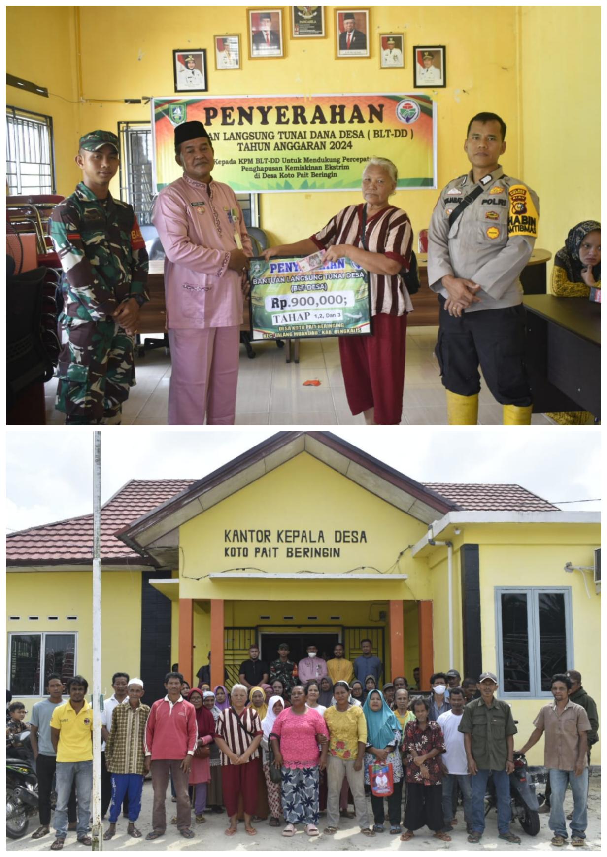 Pada hari ini Jumat 05-april-2024 Pemdes Koto Pait Beringin menyerahkan bantuan langsung tunai (BLT) dari dana desa sebesar Rp. 300.000 per bulan dari bulan Januari, Februari dan Maret dengan total sebesar Rp.900,000 setiap tiga bulan sekali selama Tahun 2024 yang diserahkan langsung oleh PJ kepala desa Abdul Bakar yang di dampingi oleh Babinkamtibmas, Babinsa, perangkat desa, RT/RW. kepada masyarakat Keluarga Penerima Manfaat.