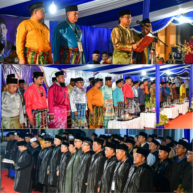 DUMAI,BERITATIME.COM Bupati Bengkalis Kasmarni, diwakili Asisten Pemerintahan dan Kesra, Andris Wasono menghadiri Malam Ta'aruf dan Pengukuhan Majelis Hakim MTQ ke-42 tingkat Provinsi Riau, di Halaman Dumai Islamic Center, Sabtu malam, 20 April 2024.