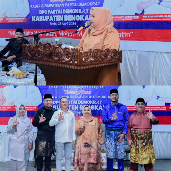 BENGKALIS, BERITATIME.COM Bupati Bengkalis Kasmarni hadiri Halal bi Halal Dewan Pengurus Cabang (DPC) Partai Demokrat bersama keluarga besar kader dan simpatisan partai Demokrat, Senin, 22 April 2024 di Kantor DPC Demokrat Jalan Pramuka Bengkalis.