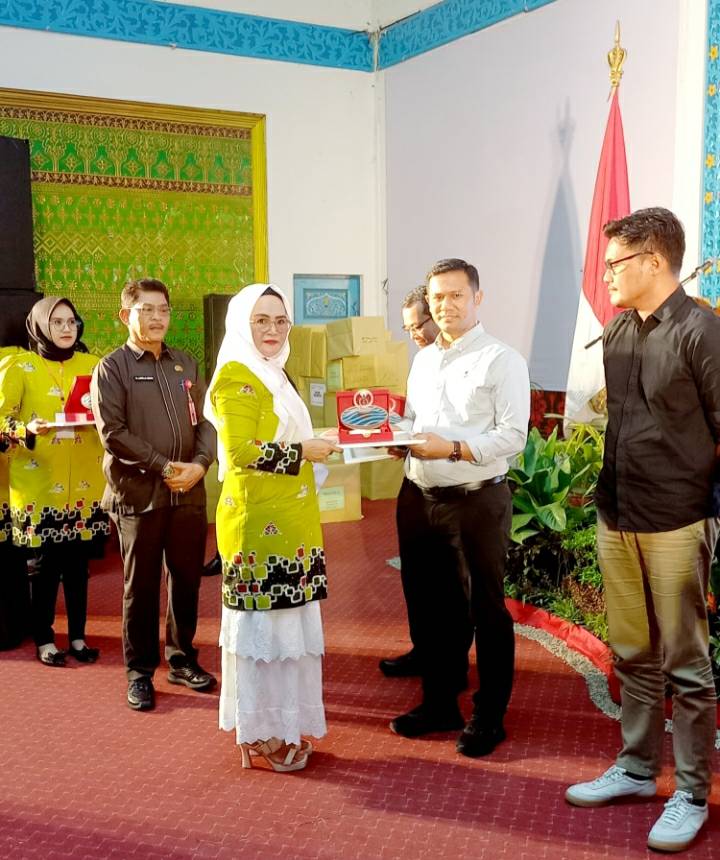 Manager Humas PT. Musim Mas saat terima penghargaan di gedung daerah kab.pelalawan