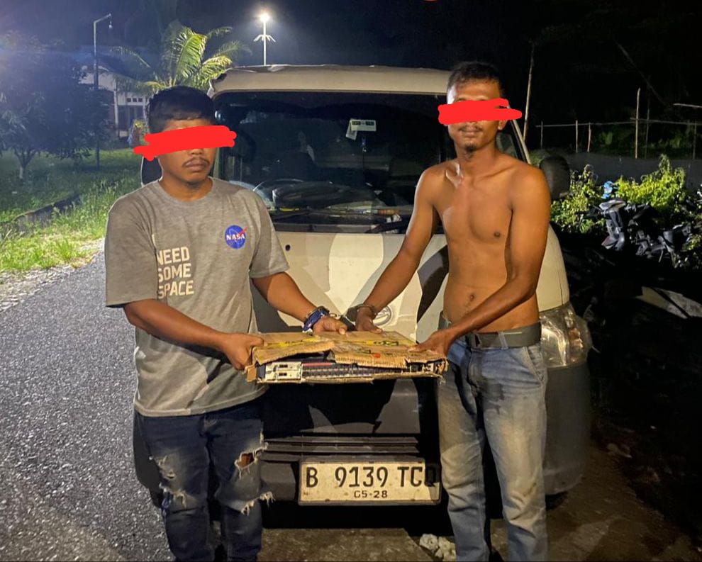 Kedua pelaku berinisial RS(28) dan HZ(41).Pelaku diamankan saat itu sedang berada diwilayah Desa Pinggir Kecamatan Pinggir.Dari kedua pelaku ini petugas mengamankan barang bukti 1 (satu) lembar Surat pernyataan kepemilikan Asset dari PT Indosat Ooredoo Hutchison,1 (satu) unit transmisi Metro ZXZTN ,1 (satu) Unit Mobil Daihatsu Grandmax berwarna putih dengan plat nomor B 9139 TCQ,1 (satu) Buah Obeng bunga berwarna kuning serta 1 (satu) buah Tang berwarna orange