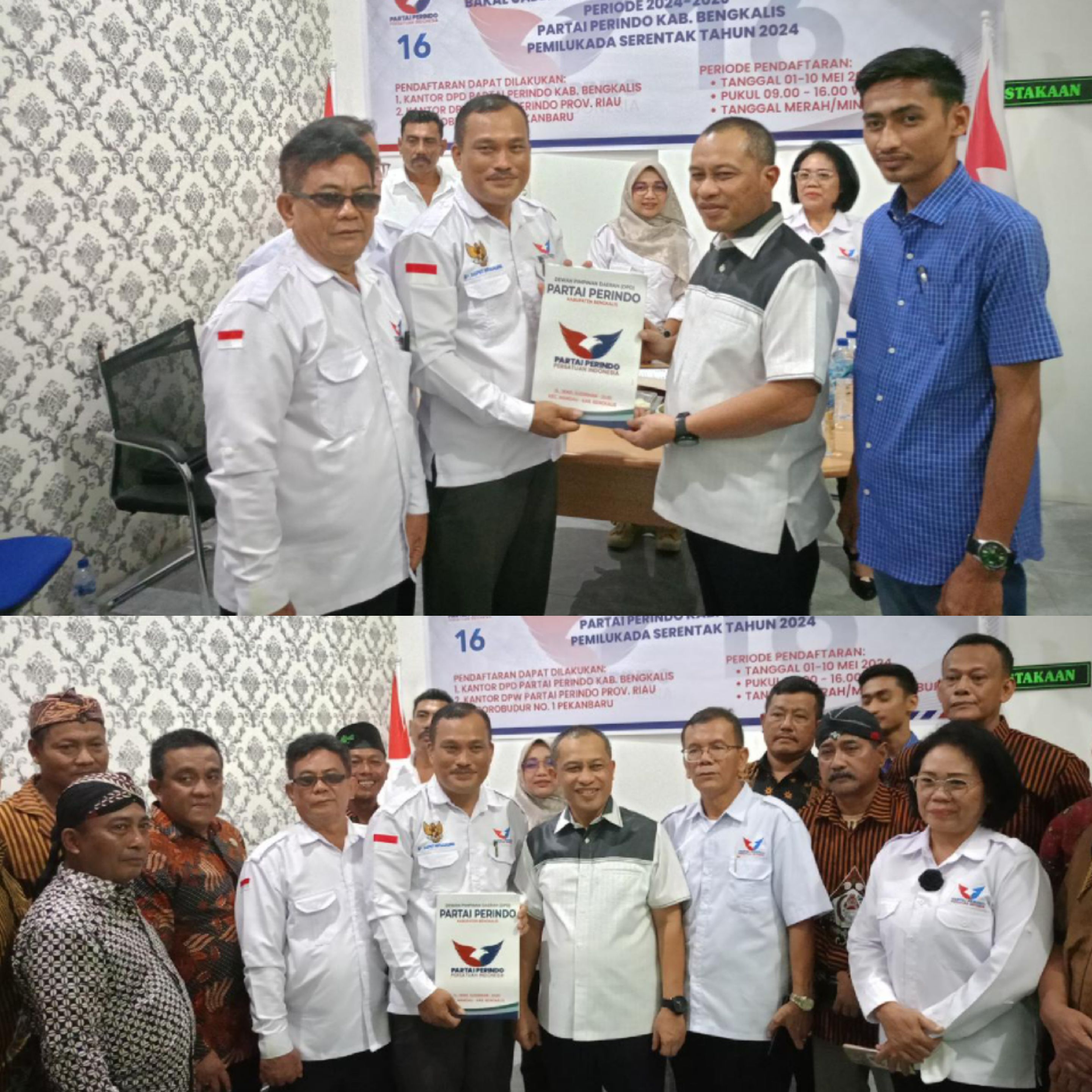Kehadiran Dr. H. Bagus Santoso.MP Wakil bupati bengkalis Periode 2021-2026 di dampingi pengurus DPD-DPC Pujakesuma kabupaten bengkalis serta sejumlah mahasiswa bengkalis di Kantor DPD Partai Perindo ini sebagai bentuk komitmen saya mengikuti prosedur Administrasi untuk mengembalikan formulir pendaftaran penjaringan wakil bupati bengkalis kepada partai perindo.
