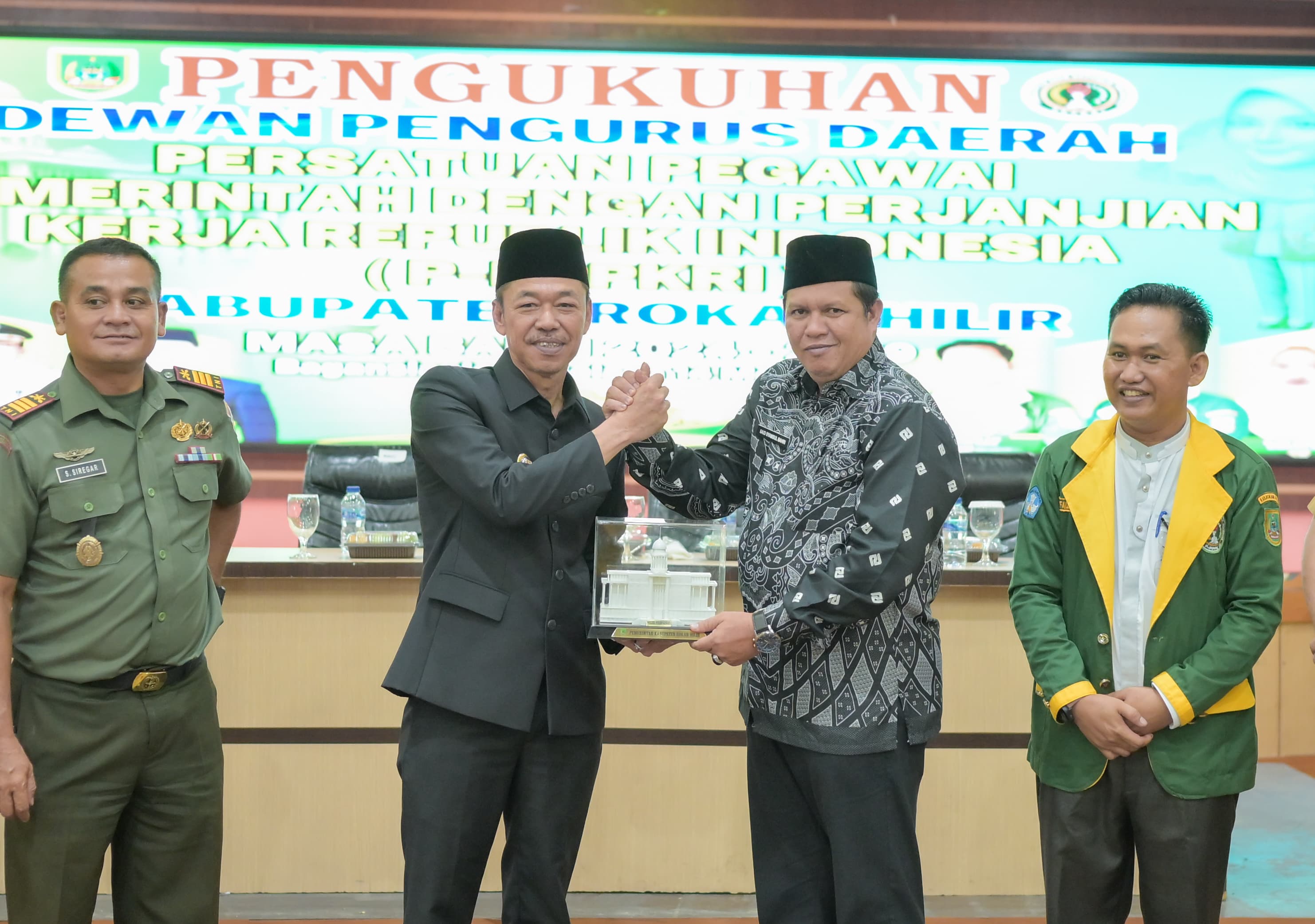 Rohil - Beritatime.com - Bupati Rokan Hilir (Rohil) Afrizal Sintong mengukuhkan Dewan Pengurus Daerah (DPD) Persatuan Pegawai Pemerintah Dengan Perjanjian Kerja Republik Indonesia (P-PPPKRI) Kabupaten Rokan Hilir masa bakti 2024-2029, Selasa (14/5/2024) di Gedung Misran Rais, Jalan Utama, Bagansiapiapi, Kecamatan Bangko, Rohil, Provinsi Riau.
