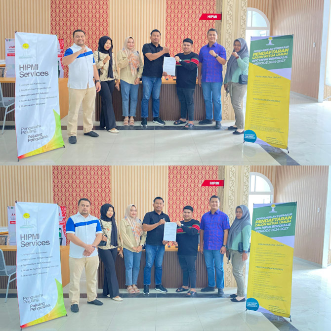 BENGKALIS, BERITATIME.COM Muhammad Arsya Fadhillah memastikan diri maju sebagai Ketua Umum Badan Pengurus Cabang Himpunan Pengusaha Muda Indonesia (HIPMI) Kabupaten Bengkalis masa bhakti 2024-2027 dengan mengembalikan berkas pencalonan ke Sekretariat Panpel Muscab HIPMI Kabupaten Bengkalis di Gedung MPP, Ahad (19/5/2024).