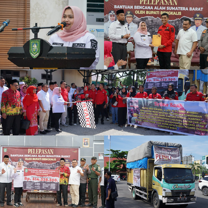 MANDAU, BERITATIME.COM pada hari ini Rabu (05/06/2024), Bupati Bengkalis Ibu Kasmarni, S.Sos., M.MP., melepas bantuan yang telah terkumpul untuk masyarakat Provinsi Sumatera Barat yang terkena bencana alam, dari masyarakat Kecamatan Mandau, Pinggir, Bathin Solapan dan Tualang Muanda, sebesar Rp. 514.338.500.
