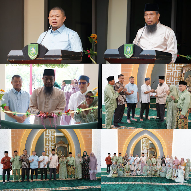 MANDAU, BERITATIME.COM Camat Mandau Riki Rihardi bersama Sekretaris Kecamatan Mandau Rudi Hartono, serta Kasi dan Kasubbag Kantor Camat Mandau, menghadiri sekaligus ikut meresmikan Masjid Al-Fahruddin, di Jl. Stadion Kelurahan Air Jamban Kecamatan Mandau, Sabtu (22/06/2024).