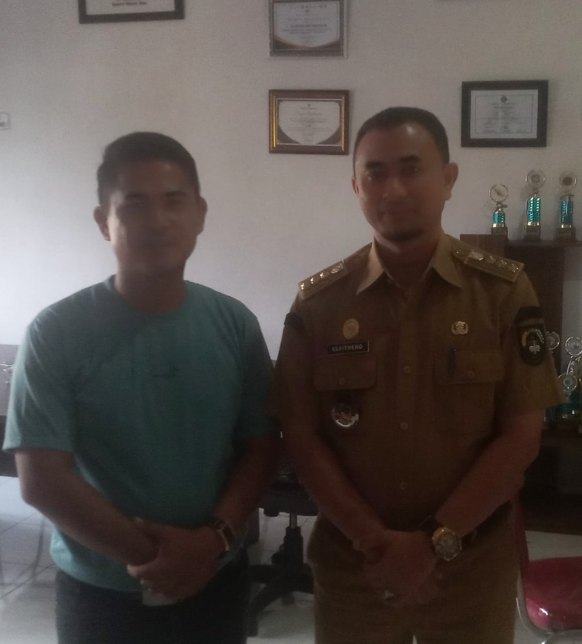 Ajang silaturahmi awak media ke kantor camat Kecamatan Bonai Darussalam Kabupaten Rokan Hulu disambut dengan baik dan ramah oleh Bapak ELFITREND SAPUTRA, S.Kom. M.IP Camat Bonai Darussalam Kabupaten Rokan Hulu.