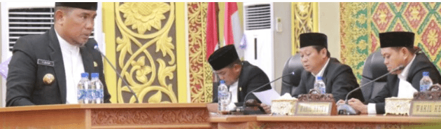 "Perkenankan kami menyampaikan ucapan terima kasih kepada pimpinan dan anggota dewan yang terhormat atas kesempatan yang diberikan kepada kami untuk menyampaikan Laporan Pertanggungjawaban Pelaksanaan Anggaran dan Belanja Daerah (APBD) Kabupaten Pelalawan Tahun 2023 dan Rancangan Akhir Rencana Pembangunan Jangka Panjang Daerah (RPJPD) Kabupaten Pelalawan Tahun 2025-2045. Sesuai amanat Undang-undang Nomor 23 Tahun 2014 tentang Pemerintah Daerah, penyampaian laporan pertanggungjawaban pelaksanaan APBD merupakan kewajiban atau agenda konstitusional sebagaimana dinyatakan pada paragraf kesembilan yaitu pasal 320 ayat 1 yang menyatakan bahwa Kepala Daerah menyampaikan rancangan peraturan daerah tentang pertanggungjawaban pelaksanaan APBD kepada DPRD berupa laporan keuangan yang telah diperiksa oleh Badan Pemeriksaan Keuangan (BPK) paling lambat 6 bulan setelah tahun anggaran berakhir. Adapun laporan keuangan sebagaimana dimaksud pada ayat 1 sekurang-kurangnya meliputi laporan realisasi APBD, neraca, laporan arus kas, dan catatan atas laporan keuangan yang dilampiri dengan laporan keuangan badan usaha milik daerah." Jelas Bupati, Selanjutnya.