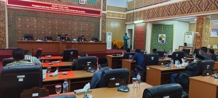 BERITATIME.COM , Pelalawan - DPRD Pelalawan Gelar Rapat Paripurna Pemberhentian Pimpinan DPRD Kabupaten Pelalawan yang digelar Adi Sukemi, Senin (5/10/2020).