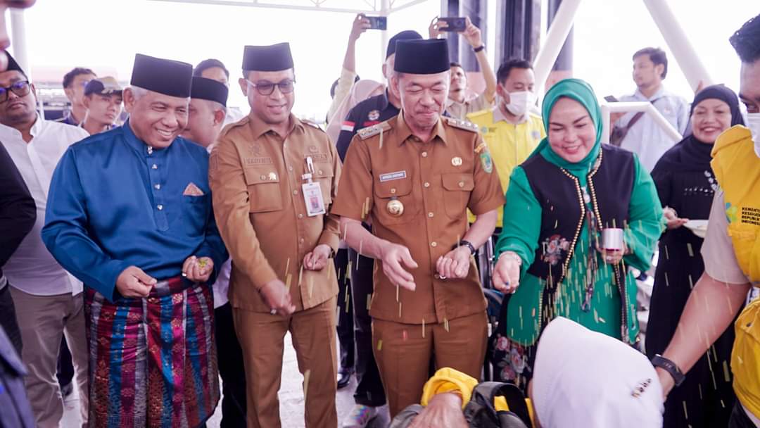 Rohil-Beritatime.com-Bupati Rokan Hilir (Rohil) Afrizal Sintong sambut kepulangan jemaah haji yang masuk Kelompok Terbang (Kloter) 14 Embarkasi Batam, Senin (8/7/2024) di Pelabuhan Buluh Kasap, Kecamatan Dumai Timur, Provinsi Riau. Dalam acara tersebut di awali dengan memainkan Kompang Adat Melayu, lalu dilanjutkan Tepuk Tepung Tawar dan Upah-upah Nasi Kunyit Balai dengan tujuan Keselamatan dan Keberkahan bagi para jemaah haji yang telah pulang kembali ke Tanah Air.